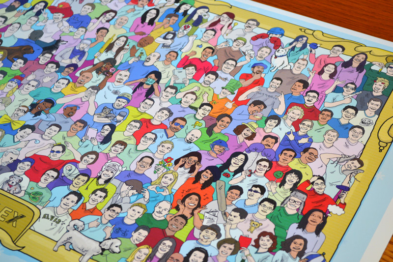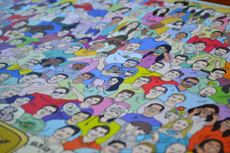 An illustration of 200 characters. I worked on each individual separately and then combined them all into one large "Family Portrait-like image.