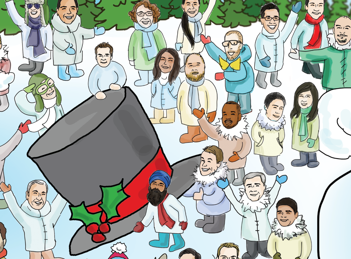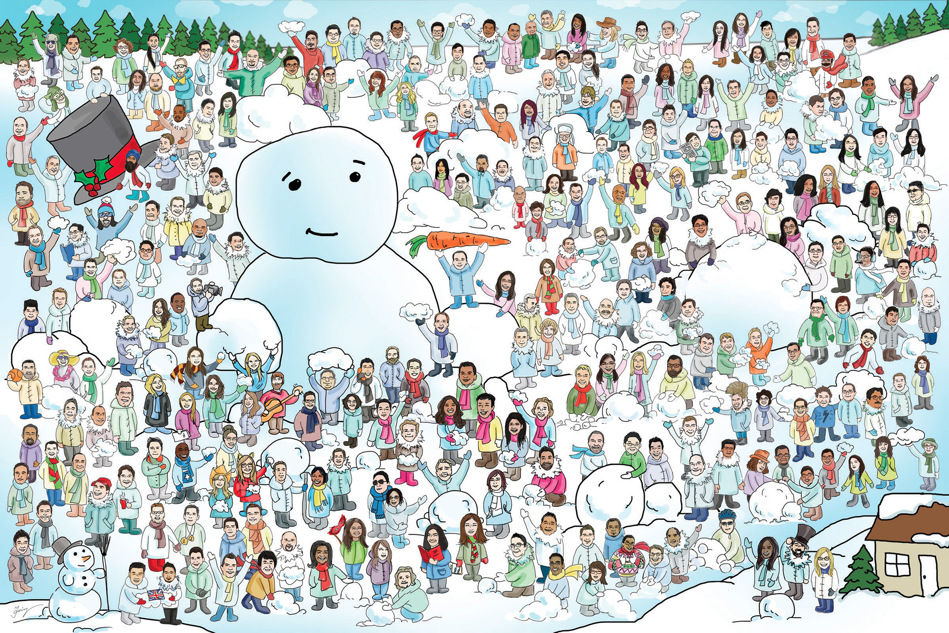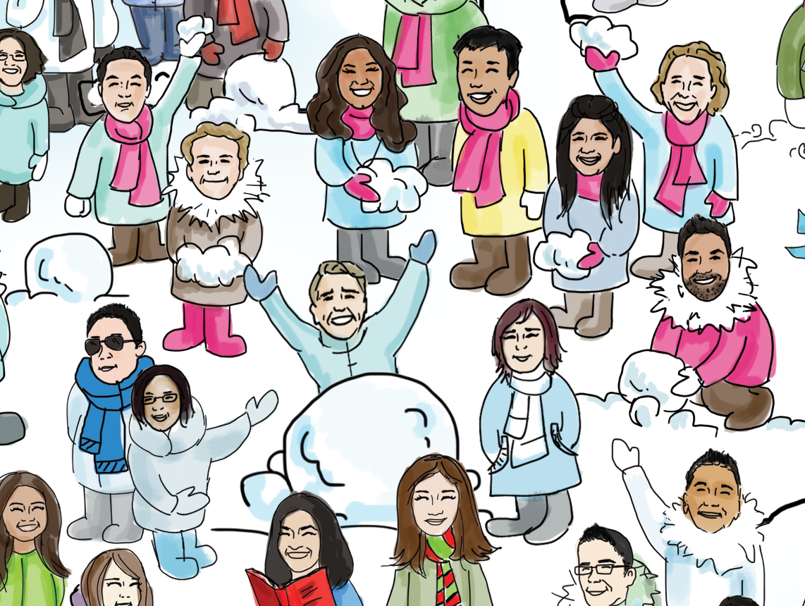 Every holiday season I draw employees in my company to showcase our fun corporate culture and to spread the holiday cheer. These cartoon illustrations of every employee become our annually holiday eCard which is distributed to all of our clients.